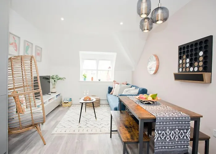 Apartamento está localizado no distrito de Boscombe de Bournemouth, a 15 minutos de carro do aeroporto de em Bournemouth. Boscombe's Royal Arcade fica nas proximidades e o centro de Bournemouth fica a 30 minutos a pé. A propriedade está a 25 minutos a pé de Galeria e Museu Russell-Cotes.